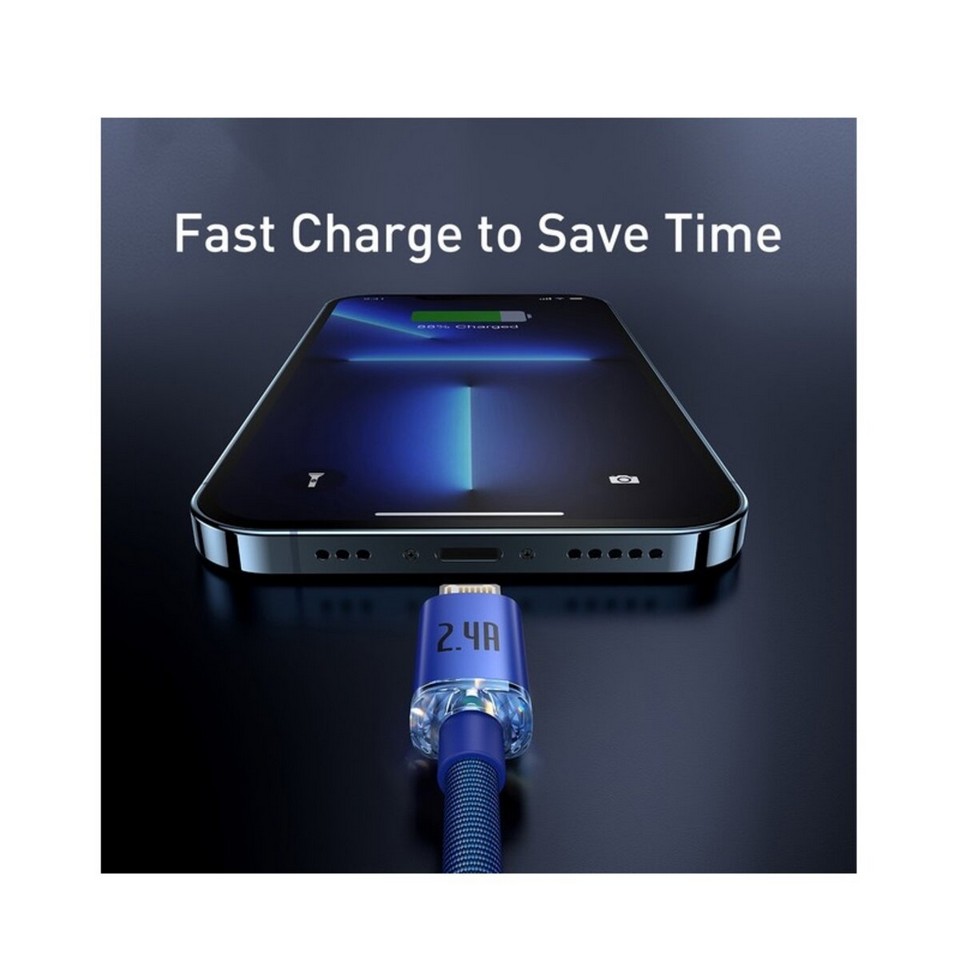 Кабель Baseus Crystal Shine Series Fast Charging Data Cable USB to iP 2.4A 1.2m Blue