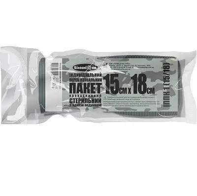 Перев'язувальний пакет кровоспинний 15х18 см стерильний індивідуальний