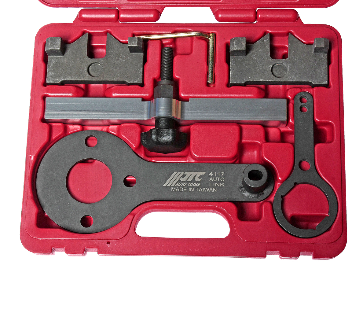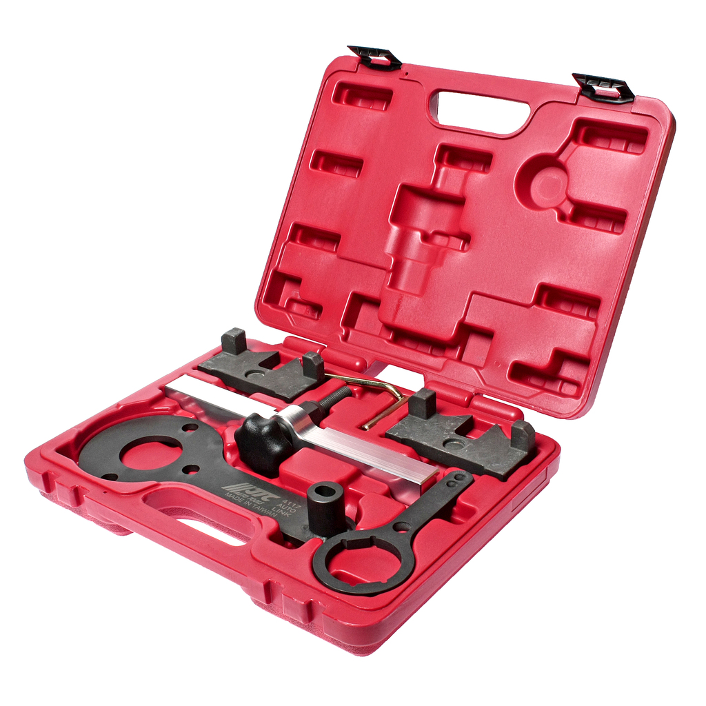 Опис Комплектація Фіксатор розподільного валу. Оригінальний номер: 11 9 890. Складається з: регулювальний гвинт (1) фіксуюча планка (2) фіксатори 2 шт. (3)силовий гвинт (6); Кронштейн для фіксації колінчастого валу (4). Оригінальний номер: 11 8570; Фіксатор колінчастого валу (5). Оригінальний номер: 11 9190; Стопор коленвала (7). Оригінальний номер: 11 8090. ; Опис Застосовується для регулювання фаз ГРМ. Призначений для фіксації розподільного валу ВМТ. ; Застосування Набір пристроїв призначений для встановлення та перевірки фаз ГРМ двигунів BMW модифікації N63.
