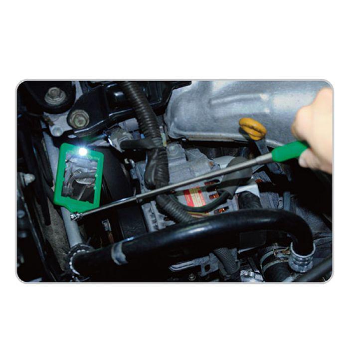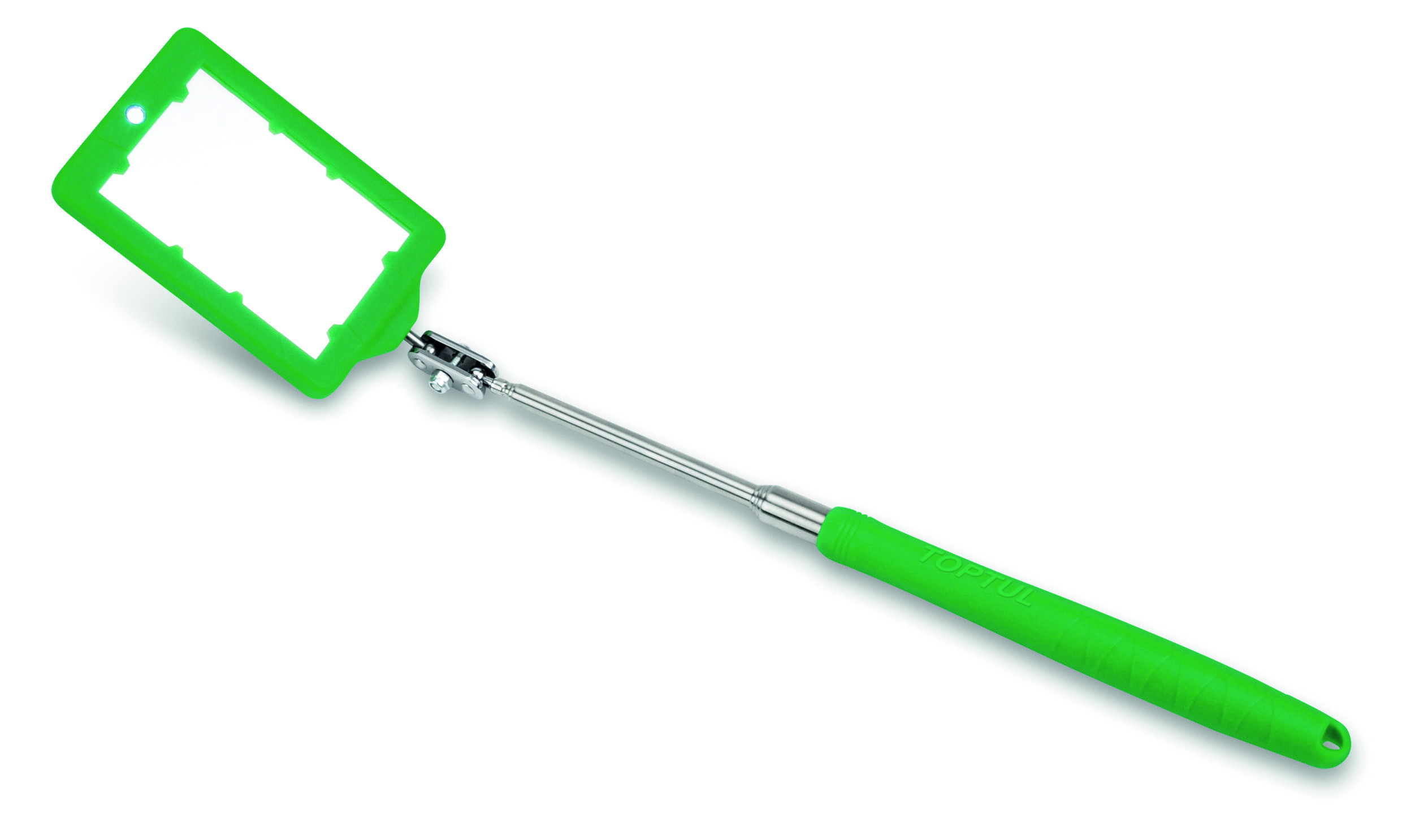 Дзеркало телескопічне із підсвічуванням 44х66 мм, 275-965 мм TOPTUL JJAM0495. Дзеркало зі світлодіодним підсвічуванням для роботи в темних областях. 360° шарнір для легкого регулювання кута нахилу та забезпечує хорошу видимість у важкодоступних місцях. Пластикова захисна рама. Одна батарея CR2025 3V. Ергономічна пластикова ручка.