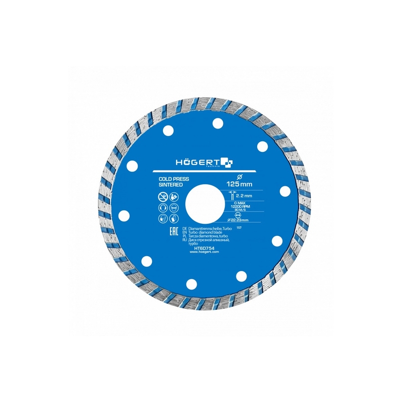 HOEGERT Диск алмазний turbo по асфальту, бетону, керамиці HOEGERT 125 (HT6D754) HT6D754