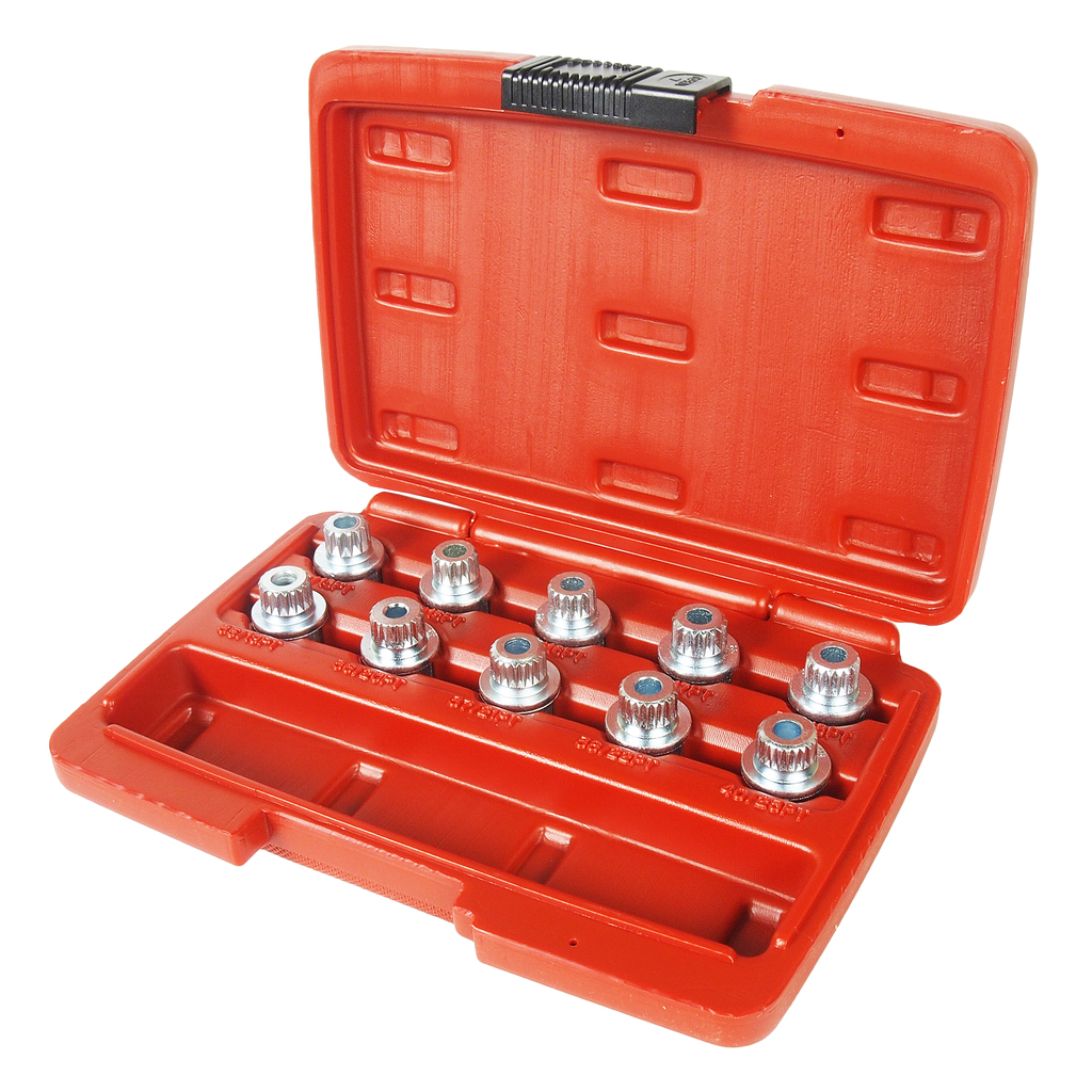 Використовується із головкою 17 мм. Застосовується для монтажу та демонтажу секреток колісних дисків більшості моделей автомобілів BMW (BMW). У комплекті: #30 (13PT), #31 (15PT), #32 (16PT), #33 (17PT), #34 (18PT), #35 (19PT), #36 (20PT), #37 (21PT) , # 38 (22PT), # 40 (23PT). ;