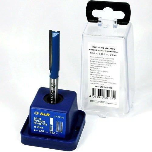Фреза пазова S&R 9,52х38 мм – пазова фреза подовжена пряма призначена для вибірки пазів прямокутної форми завглибшки до 38 мм. Виготовлена фреза з високовуглецевої сталі, завдяки чому інструментом можна працювати як з м'якою, так і з твердою деревиною. Хвостовик діаметром 8 мм дозволяє працювати з широким діапазоном електричних фрезерів, які обладнані цангою відповідного діаметра.