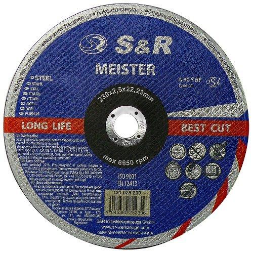 S&R Meister A 30 R BF - абразивне коло з подвійним армуванням, призначене для різання конструкційної сталі: легованої, нелегованої, високолегованої; для різання листової сталі; для тонкостінних металевих профілів, а також можна застосовувати для роботи з чавуном, міддю, латунню, бронзою алюмінієм та його сплавами.