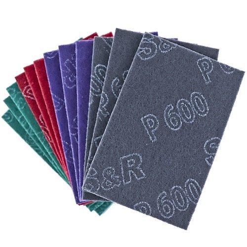 Набір ручних падів S&R 12шт. 150 х 230 мм — призначений для шліфування, зняття лакофарбових покриттів на металевих та дерев'яних поверхнях. Кожен пад (поліестровий абразивний диск) є невеликою губкою розміром 150х230 мм, виготовленою з нетканого матеріалу, де кожна ворсинка покрита абразивними частинками. Такий матеріал має великий ресурс використання, він практично не забивається, не розмокає, легко чиститься. /> • Пад із зернистістю Р80 - 3 шт.