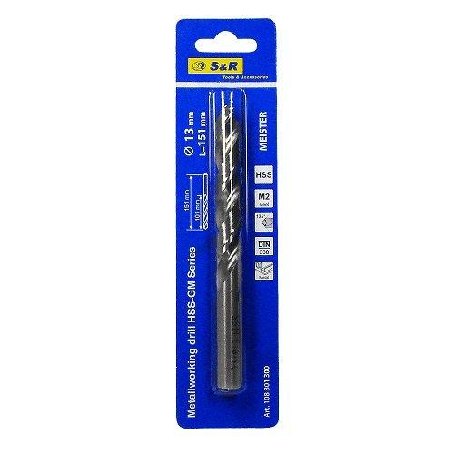 Свердло по металу S&R Meister HSS 13.0x151 мм виготовлено за стандартами DIN338. Обладнаний циліндричним хвостовиком. Постачається у блістері