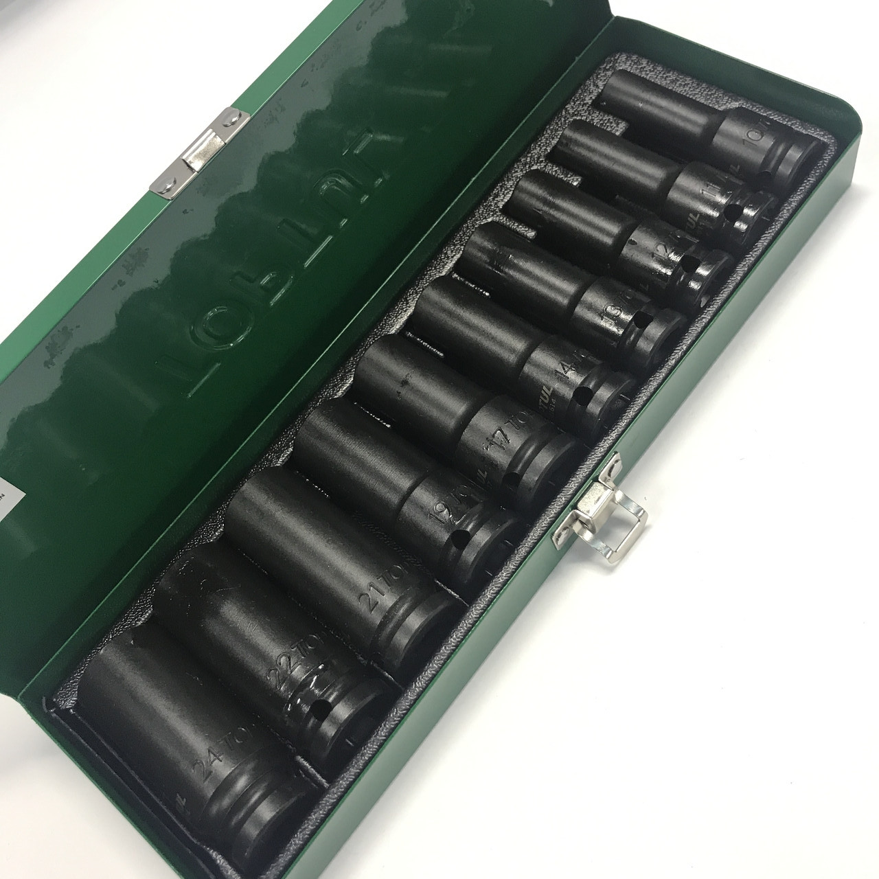 Набір довгих торцевих головок ударних TOPTUL 1/2" 10-24мм 10 од. GDAD1002 в залізному кейсі 10,11, 12, 13, 14, 17, 19, 21, 22, 24мм
