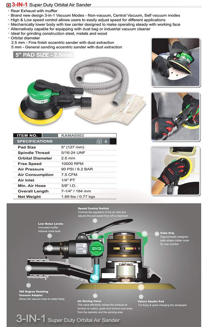 Шлифмашинка орБітальная пневматическая TOPTUL KAMA0503: