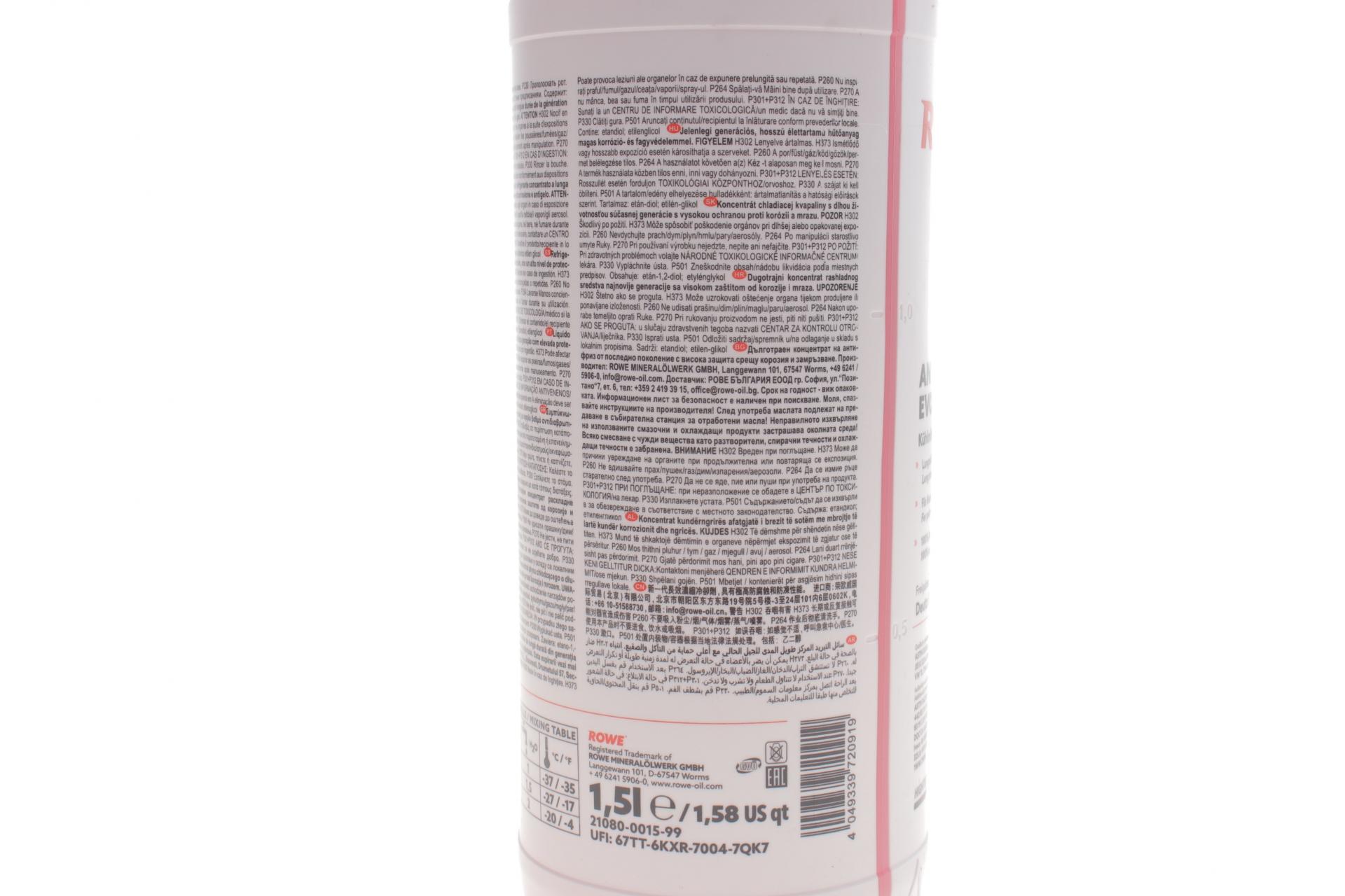 ROWE HIGHTEC ANTIFREEZE COOLANT AN 12 EVO G12+ фіолетовий 1.5л (21080001599)
