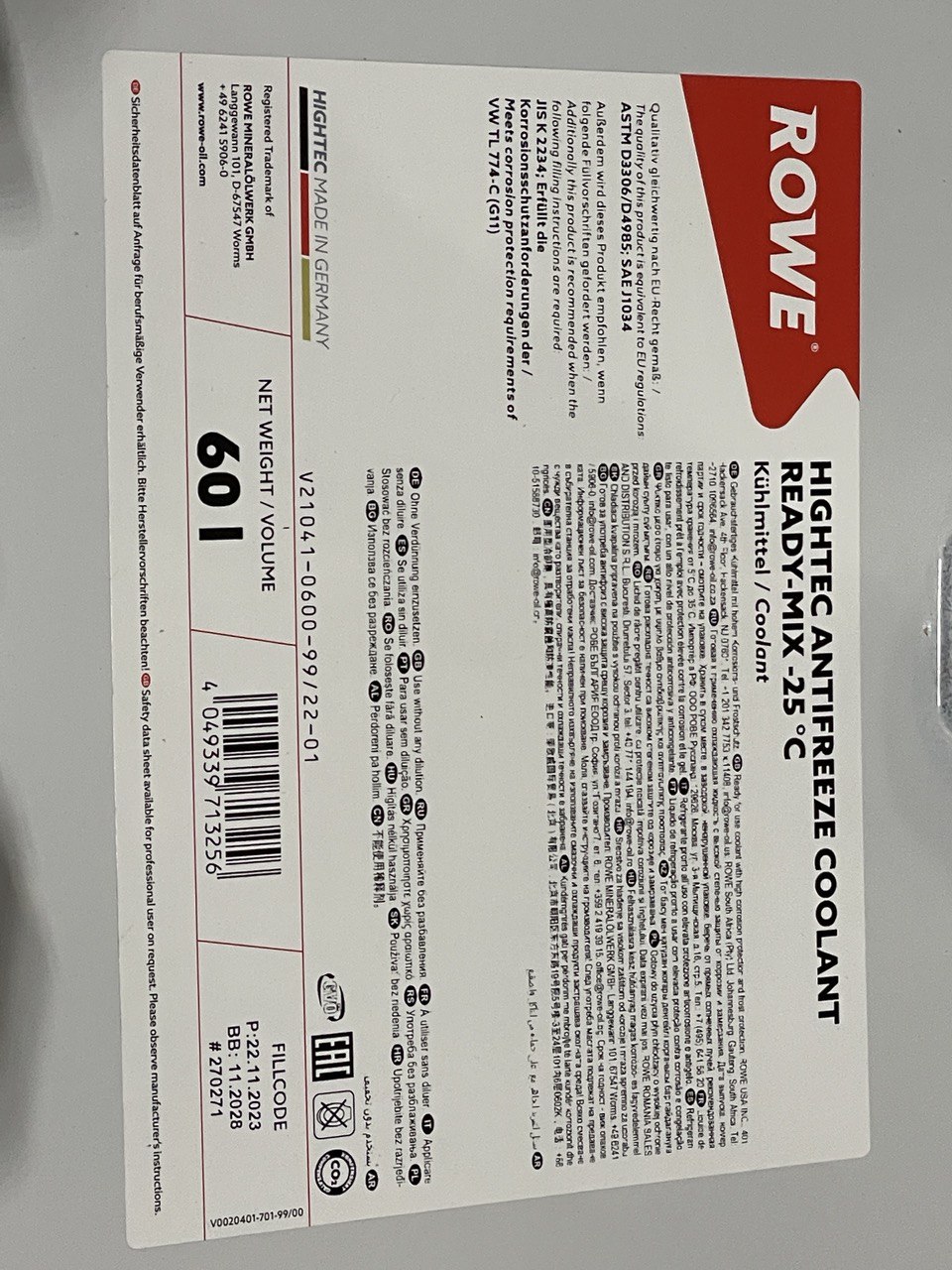 Назва | HIGHTEC ANTIFREEZE COOLANT RM -25°C |