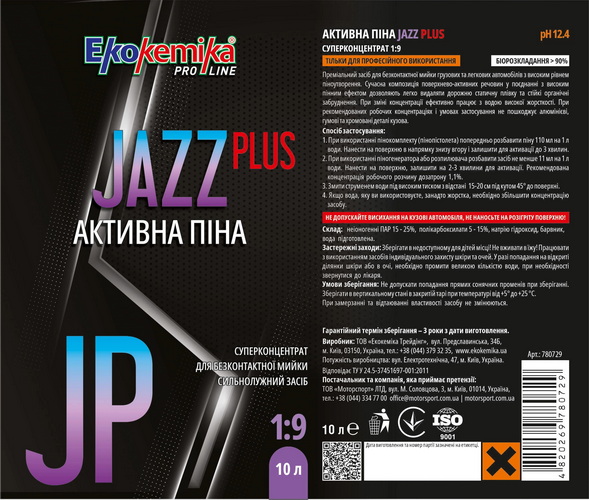 Активна піна JAZZ PLUS 1:9. 10 л Ekokemika Pro Line