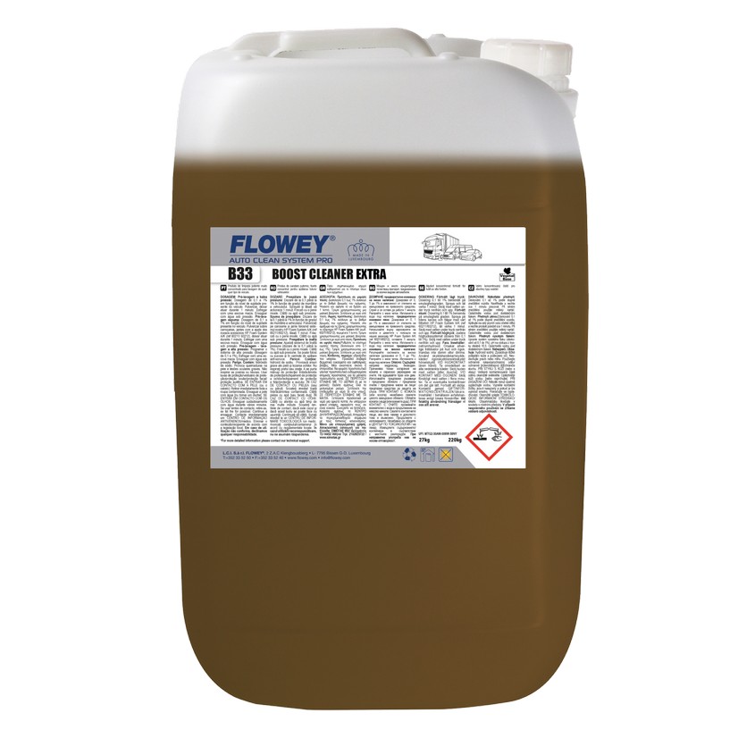 Ультра потужна активна піна FLOWEY BOOST CLEANER EXTRA B33 - 25 л. Безконтактна піна. Нове покоління миючого засобу. Особливо добре зарекомендувала себе при усуненні з кузова та всієї поверхні транспортних засобів: дорожнього бруду, комах, вуглецевого пилу гальм. Застосовується для миття вантажного, комерційного та легкового транспорту. Успішно застосовується для попереднього миття автомобіля. Адаптовано для використання під низьким та високим тиском попереднього миття.