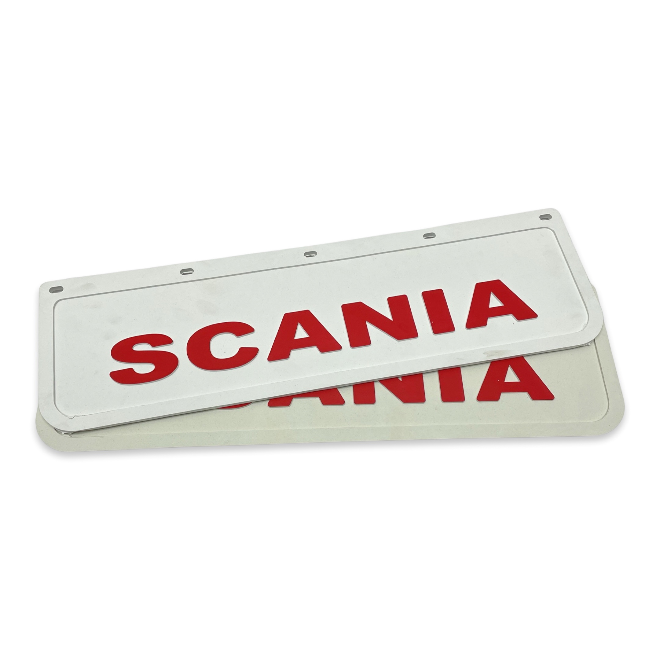 Бризковик на крило з червоним написом "SCANIA" Білий (600X180) GURBUZ PLASTIK ( GP0003)