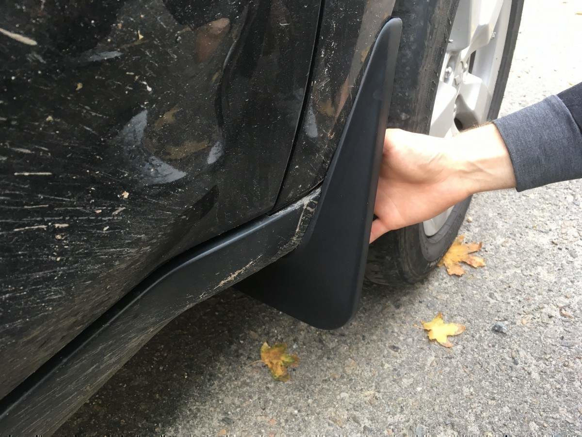 Кріплення бризковиків здійснюється за допомогою саморізів і іноді додаткових кріплень, які встановлюються в штатних місцях кріплення (якщо цього передбачено конструкцією авто).