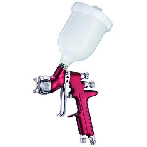 Краскопульт пневматичний LVMP верхній пластиковий бачок 600мл, діаметр форсунки-1,3мм. Тип LVMP - малий потік повітря та середній тиск на виході забезпечує рівномірне нанесення фарби та економить до 15% фарби. спеціалізований професійний фарборозпилювач для фарбування автомобілів; використовується для фінішних фарбувальних робіт; технологія розпилення LVMP (малий потік повітря, середній тиск) – застосовується, рівномірного розпилення, забезпечуючи швидке та ефективне нанесення фарби; високий перенесення матеріалів на поверхню, що фарбується; регулювання подачі повітря, фарби та ширини факела розпилення. Важливо: не рекомендується використовувати з ЛКМ, які містять абразивні складові та з молотковими фарбами. Більш детальну інформацію можна знайти в нашій статті "Як вибрати пневматичний фарбокопульт для автомобіля?".