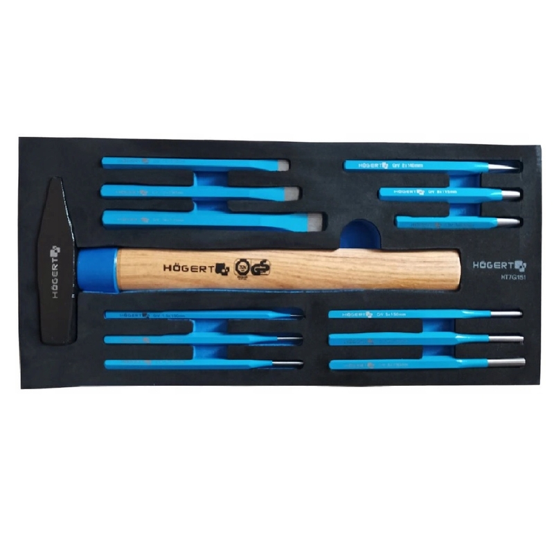 - набір зубил, кернерів та пробійників HT3B712 призначений для різання, зачистки та вибивання твердих матеріалів;