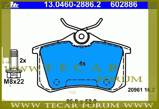 Колодки гальмівні, комплект VAG 8E0698451L Задній міст