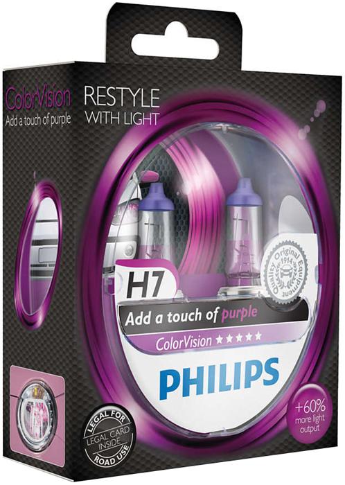 Автолампа (комплект) галогенна PHILIPS H7 12В (12972CVPPS2) COLORVISION