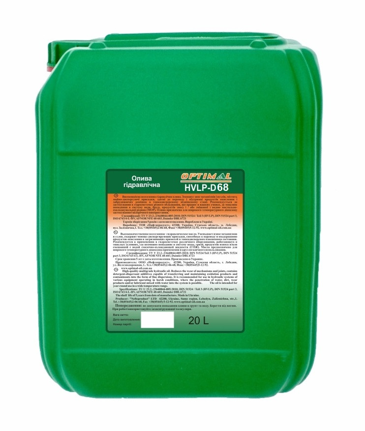 Гідравлічна олива HVLP-D 68 - високоякісна гідравлічна олива, що зменшує зношення механізмів і вузлів, забезпечує ефект очищення в гідросистемі і підтримують частки забруднень в тонкодисперсному підвішеному стані. Оливи містять миюче-диспергуючі присадки, здатні до переходу продуктів окислення і забруднюючих домішок у форму тонких дисперсій, суспензій і емульсій. Завдяки високій диспергируючій здатності даний продукт може застосовуватися в системах, в які може проникати вода, бруд і продукти зношування.