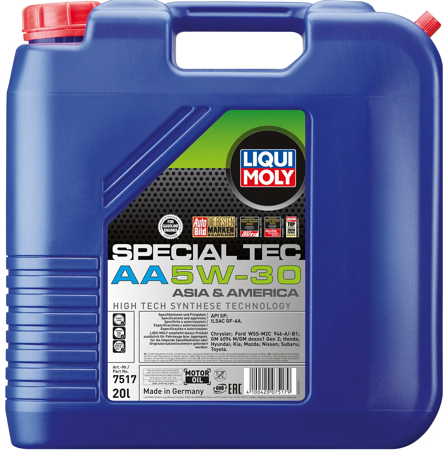 Leichtlauf Special AA 5W-30 — НС-Синтетична моторна олива Сучасна моторна олива - спеціальний продукт для цілорічного застосування в автомобілях японського та американського виробництва. HC-синтетична всесезонна малов'язка моторна олива, вироблена за новітніми технологічними вимогами. Забезпечує найкращу чистоту деталей двигуна, знижує втрати потужності на тертя та захищає його від зношування. Це дозволяє одночасно економити паливо та продовжити термін служби мотора. Залежно від інструкції виробника може використовуватись до 40 000 км. Коли застосовувати Спеціально для бензинових двигунів азіатських та американських виробників. Можливе використання на легкових дизелях за прямої рекомендації автовиробників. Спеціальна, HC-синтетична, всесезонна моторна олива для японських і американських бензинових двигунів з турбонаддувом і без нього, а також з інтеркулерами. Спеціально призначено для подовжених інтервалів зміни масла Допуски та специфікації: API SN\CF; ILSAC GF-5