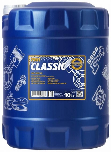 CLASSIC 10л HC Synthese engine oil; SAE 10W-40; API SN/CH-4; ACEA A3/B4; MB 229.3; VW-Norm 501 01/505 00; RENAULT RN 0700 / RN 0700