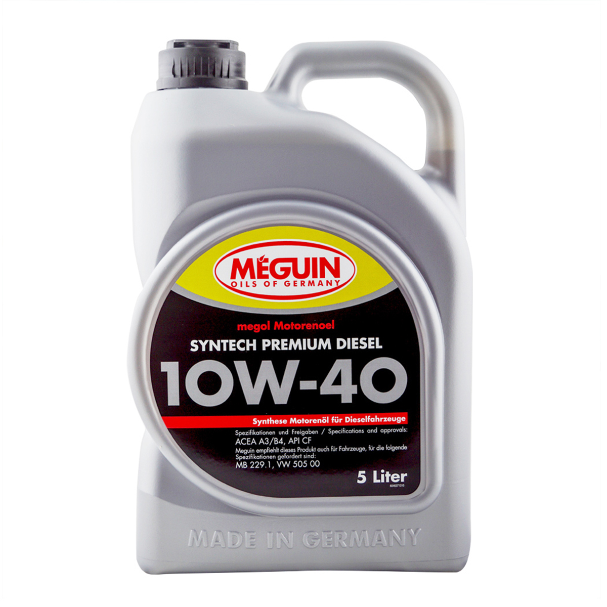 Напівсинтетична олива для легкових та малих вантажних автомобілів megol Syntech Premium Diesel 10W-40 з низькою в'язкістю, з сучасною технологією присадок та компонентами синтезу. Він підходить для цілорічного використання дизельних двигунів з турбонаддувом та без нього. Це покращує роботу двигуна, знижує тертя та знос, а також знижує витрату палива. Переваги Розроблено з урахуванням особливостей роботи двигунів сучасних легкових автомобілів, що відрізняються високою питомою потужністю та малим об'ємом моторної оливи. Застосовується всесезонно у легкових автомобілях та малих вантажівках. Ефективно при динамічних режимах (часті прискорення та уповільнення під час їзди містом). Універсально в дизельних двигунах. Ефективно для сучасних двигунів: багатоклапанних, з турбонаддувом (також із системою рециркуляції газів, що відпрацювали).