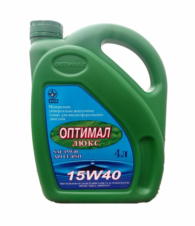 Мінеральна універсальна моторна олива Оптимал 15W40 Люкс для високофорсованих дизельних та карбюраторних двигунів, у тому числі двигунів з турбонаддувом та оснащених каталізатором.