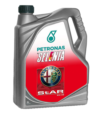 Високоякісне мастило, створене для захисту двигуна, у тому числі важких умовах термічного стресу, у тому числі що виникає в результаті спортивного стилю водіння. Його унікальна формула покращує властивості двигуна, підвищуючи потужність, полегшуючи холодний пуск та зберігає в'язкість протягом усього терміну експлуатації оливи. Selenia StAR забезпечує максимальну продуктивність двигунів із прямим упорскуванням виробництва Alfa Romeo нового покоління та всім високопродуктивним двигунам. До складу оливи входять спеціальні протизносні добавки, розроблені Petronas у співпраці з Alfa Romeo, що гарантують максимальний захист навіть за тонкої масляної плівки. Завдяки технології EST Selenia StAR виконує вимоги стандарту Fiat 9.55535-H2, створеного для мастил, що забезпечують максимальну якість та постійну в'язкість в умовах високотемпературного стресу. Специфікації: SAE 5W-40, ACEA A3/B3, API SM, FIAT 9.55535-H2 CONTRACTUAL TECHNICAL REFERENCE N°F216