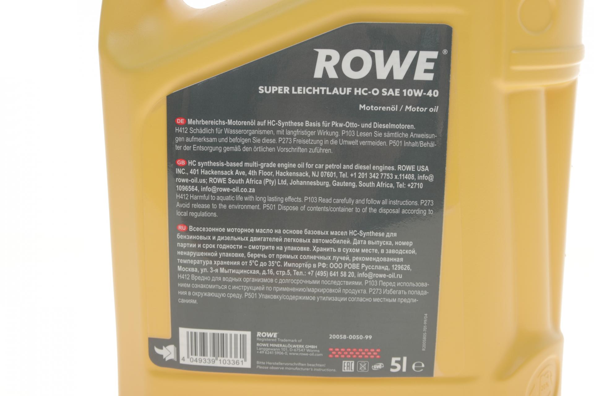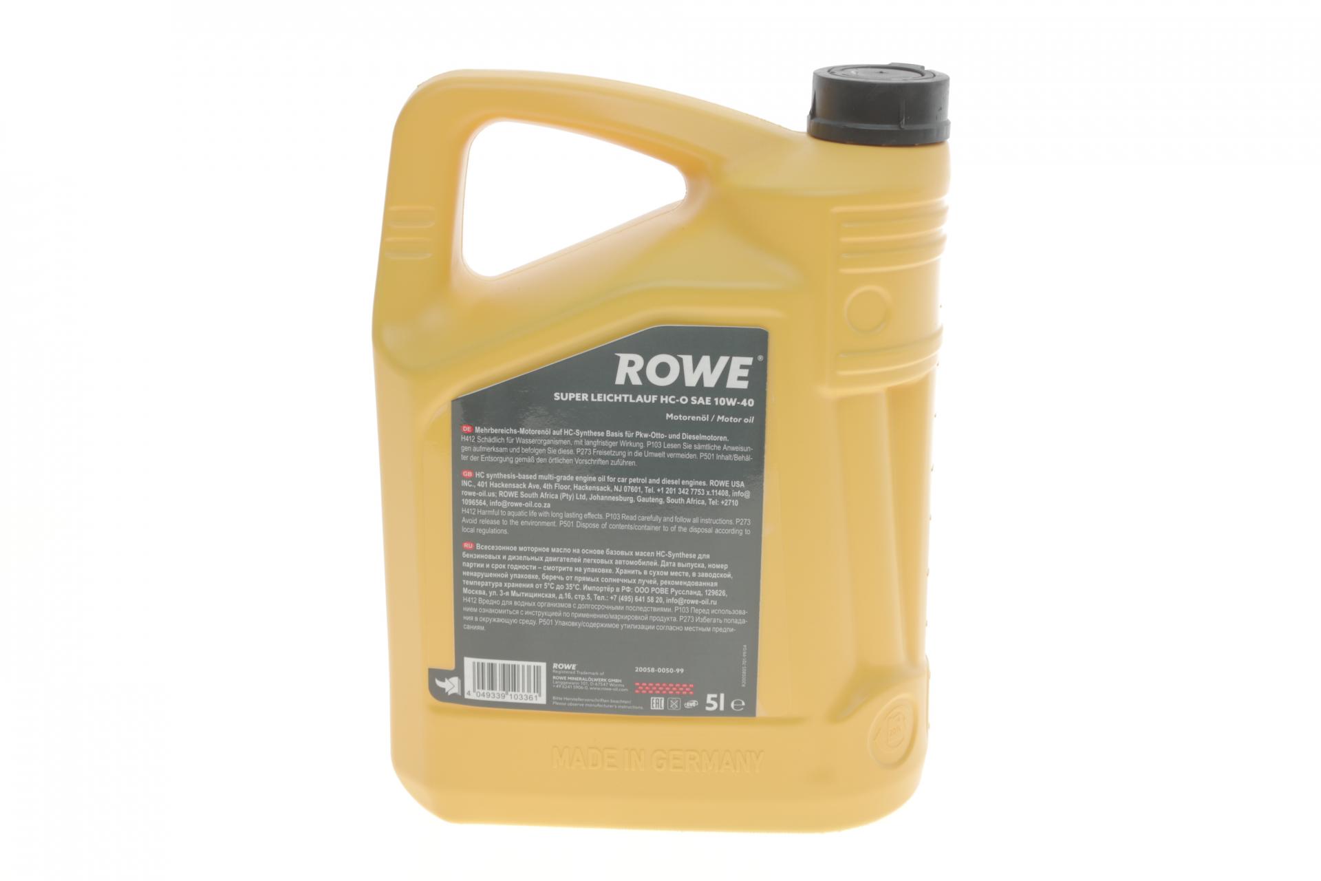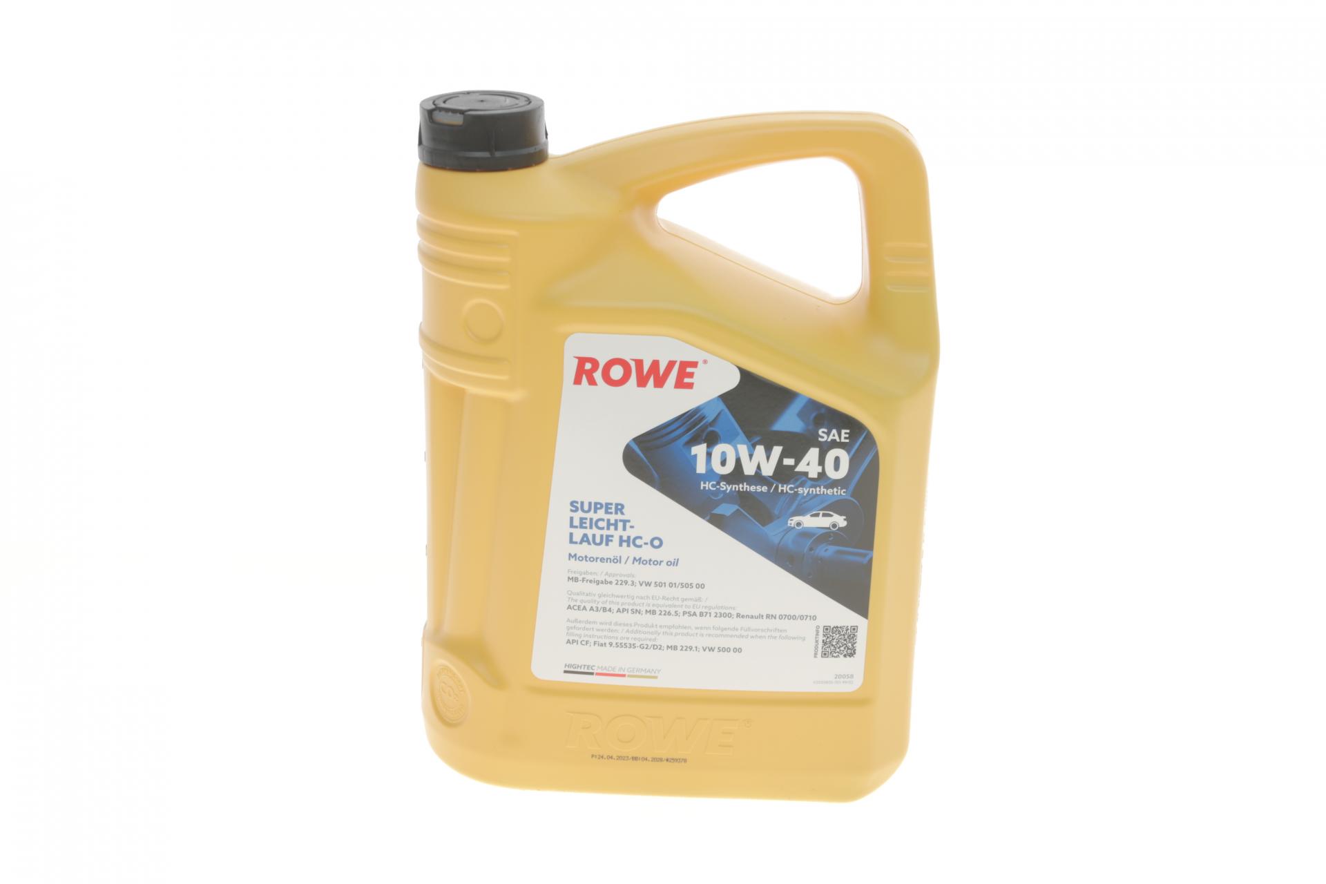 Олива моторна ROWE HIGHTEC SUPER LEICHTLAUF HC-O 10W-40 5л. 20058005099