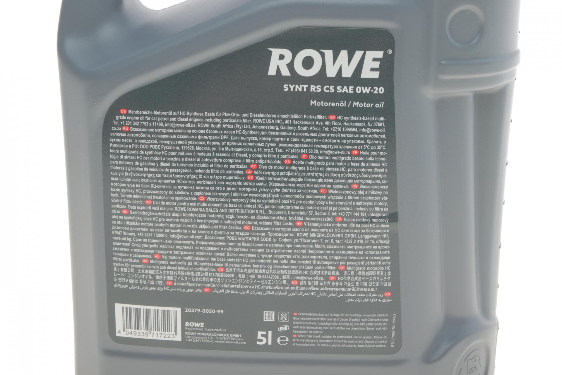 Олива моторна ROWE HIGHTEC SYNT RS C5 0W-20 5л. 20379005099