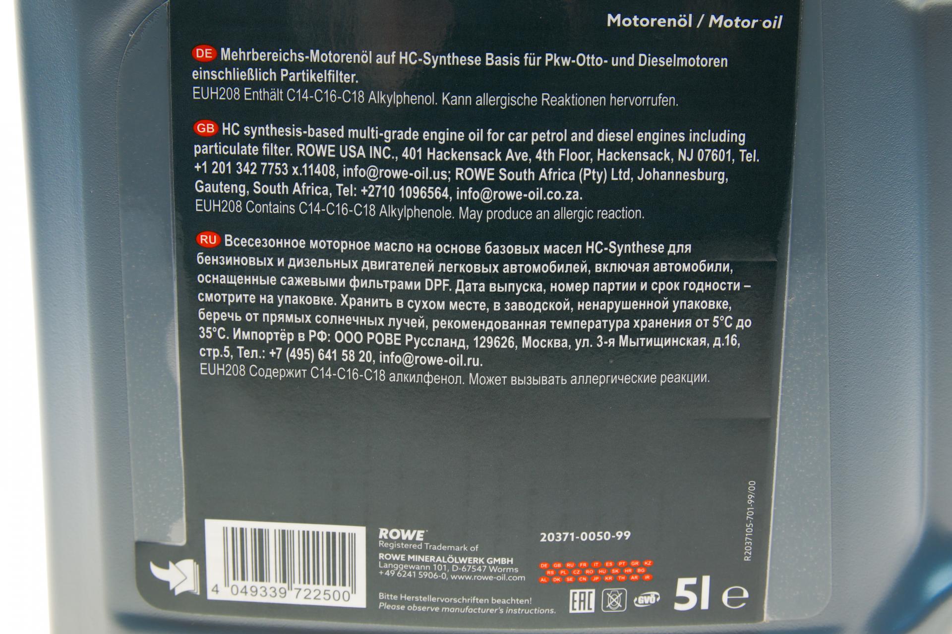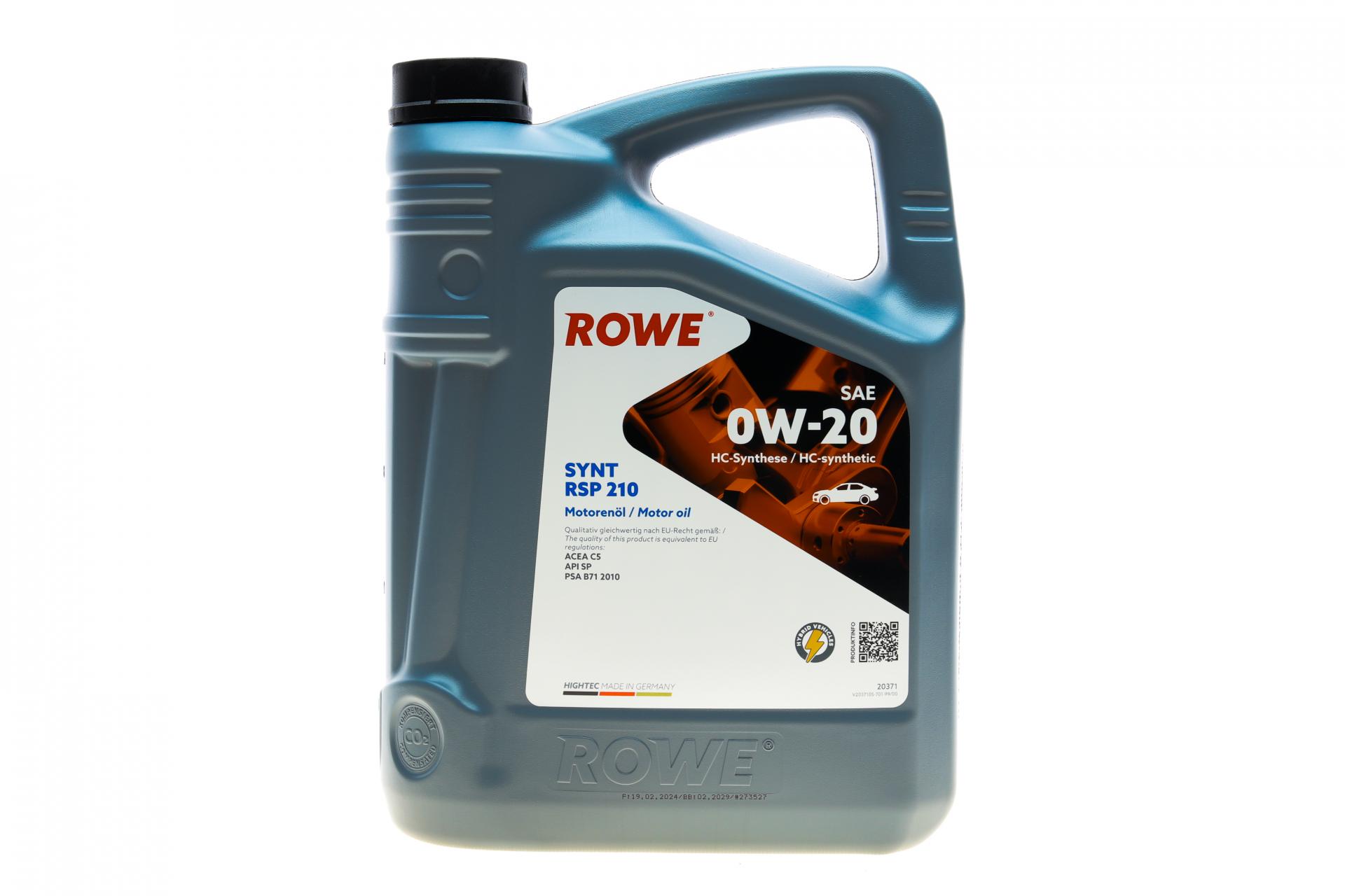Олива моторна ROWE HIGHTEC SYNT RSP 210 0W-20 5л. 20371005099