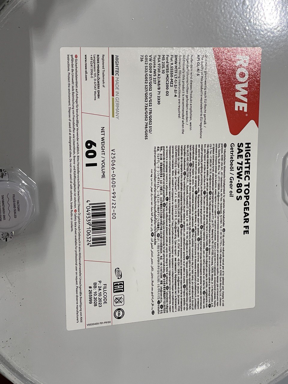 Олива трансмісійна ROWE HIGHTEC TOPGEAR FE 75W-80 (60л.) 25066060099