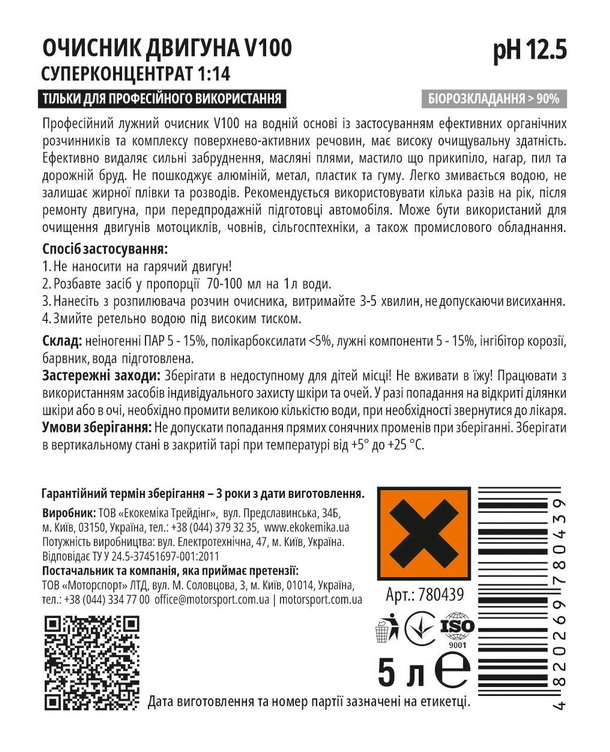 780439 Засіб для миття двигуна V100 5 л концентрат (Україна)