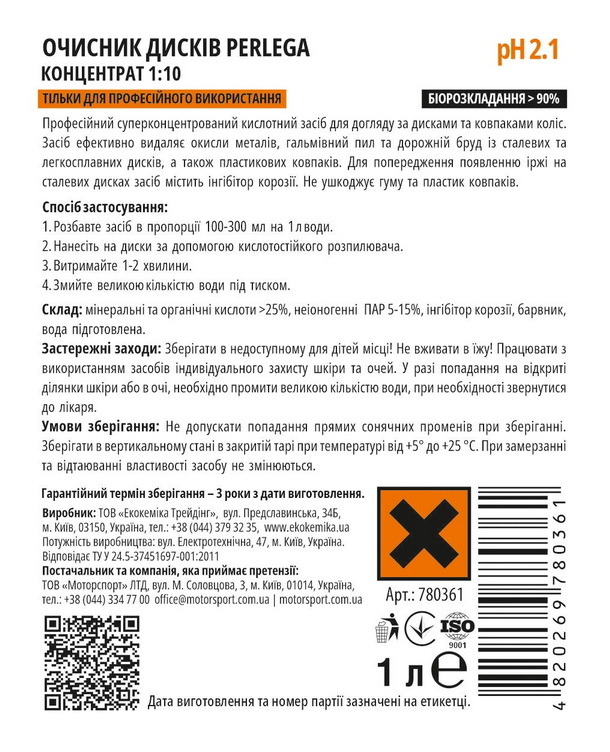 780361 Очисник колісних дисків PERLEGA 1 л концентрат (Україна)