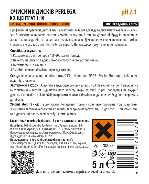 780378 Очисник колісних дисків PERLEGA 5 л концентрат (Україна)