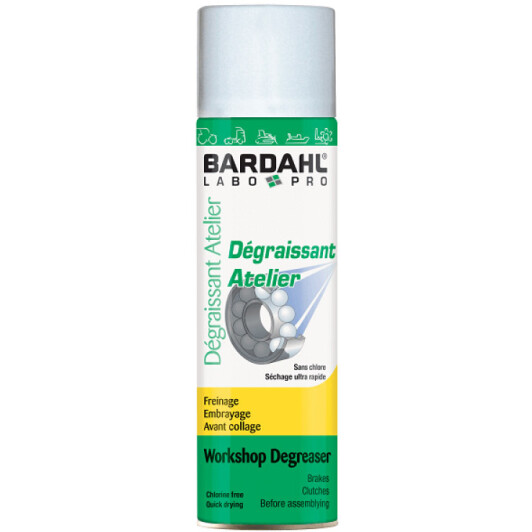 BARDAHL Degr. Знежирюючий спрей Atelier для металевих деталей. Він також дуже добре розчиняє стійкі загрязнення.