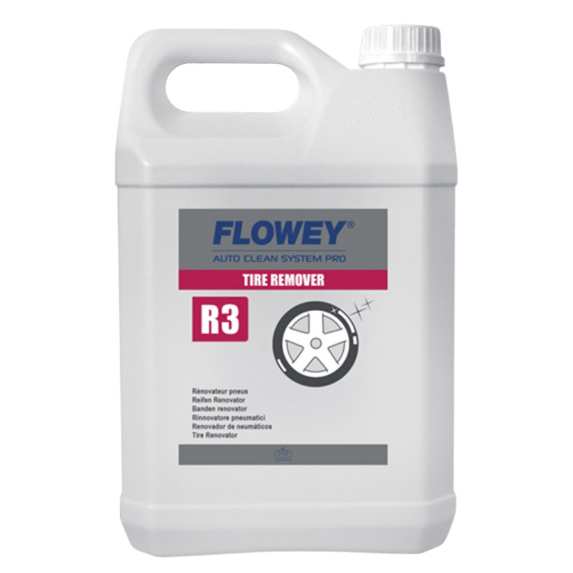 Відновлювач шин FLOWEY TIRE REMOVER R3 - 5 л. Забезпечує сатиновий блиск боковинам шин. Освіжає та надає гумі вигляд нової. Має виражені гідрофобні та антистатичні властивості.