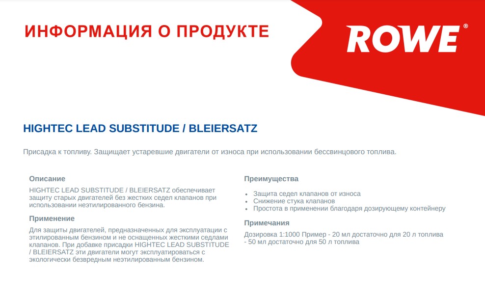 Присадка в паливо (бензин) HIGHTEC LEAD SUBSTITUDE ROWE (21500000299)
