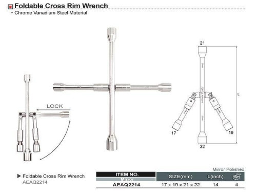 Toptul Ключ балонний хрест 17*19*21*22 мм складаний TOPTUL AEAQ2214 (AEAQ2214)