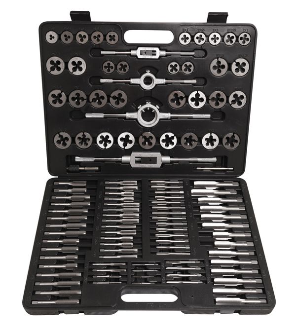 Склад: Набір мітчиків та плашок RF-B110-1:метричний 110пр.ROCKFORCE Набір метричних мітчиків та плашок професійної якості, що включає роз'ємні плашки, повний набір мітчиків, три тримачі мітчиків та два тримачі плашок. Мітчики поставляються парами – конічний мітчик та мітчик-пробка. Конічний мітчик має поступову ріжучу дію через виражену фаску різьблення, що робить його придатним для нарізування різьблення. Мітчик-пробка має набагато меншу фаску і використовується після конусного мітчика, щоб нарізати різьблення близько до дна відвернення. Поставляється у кейсі для зберігання. Розміри мітчиків варіюються від 4 мм x 0,7 до 18 мм x 1,5 Розміри матриць варіюються від M2 x 0,4 до M18 x 1,5. Мітчики (по 2 шт.) та плашки, розміри: М2 х 0,4, М3 х 0,5, М4 х 0,7, М5 х 0,8, М6 х 0,75, М6 х 1,0, М7 х 0,75, М7 х 1,0, M8 х, 1,25, M9 x 0,75, M9 x 1,0, M9 x 1,25, M10 x 0,75, M10 x 1,0, M10 x 1,25, M10 x 1,5, M11 x 0,75, M11 x 1,0, M11 x 1,2 0,75, М12 х 1,0, М12 х 1,25, М12 х 1,5, М12 х 1,75, М14 х 1,0, М14 х 1,25, М14 х 1,5, М14 х 2,0, М16 х 1,0 та М18 х 1,5.2 регульованих утримувача мітчика M6–M20 (1/4–3/4 дюйма) та M3–M12 (1/16–1/2 дюйма). Т-подібний утримувач мітчиків; 2 тримачі плашок діаметром 25 мм (1 дюйм) та 38 мм (діаметр 1 1/2 дюйма). Виготовлені із легованої сталі. Поставляється у кейсі для безпечного зберігання.