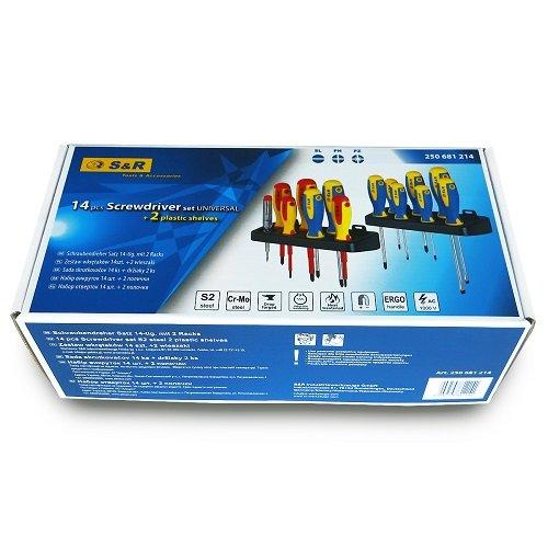 Набір викруток S&R 14 шт. – універсальний набір викруток, що складається зі звичайних та діелектричних з різним шліцом SL, PH, PZ та тестер.