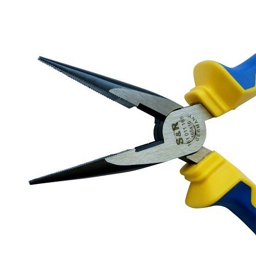 S&R ERGO 165x47 – подовжені напівкруглогубці для роботи у важкодоступних місцях або з дрібними деталями. Використовуються в будівельних роботах, для ремонтних робіт, в електроніці, монтажі. Загальна довжина інструменту – 16,5 см.