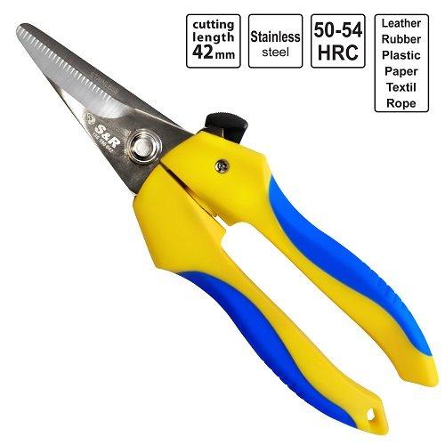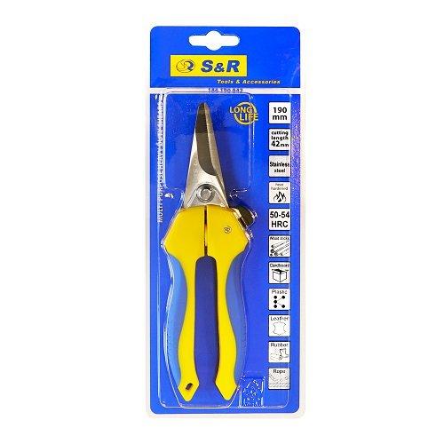 S&R 190 мм – універсальні ножиці з прямим різом для розрізання товстих мотузок, шкіри, пластику, картону, гуми та інших міцних матеріалів.