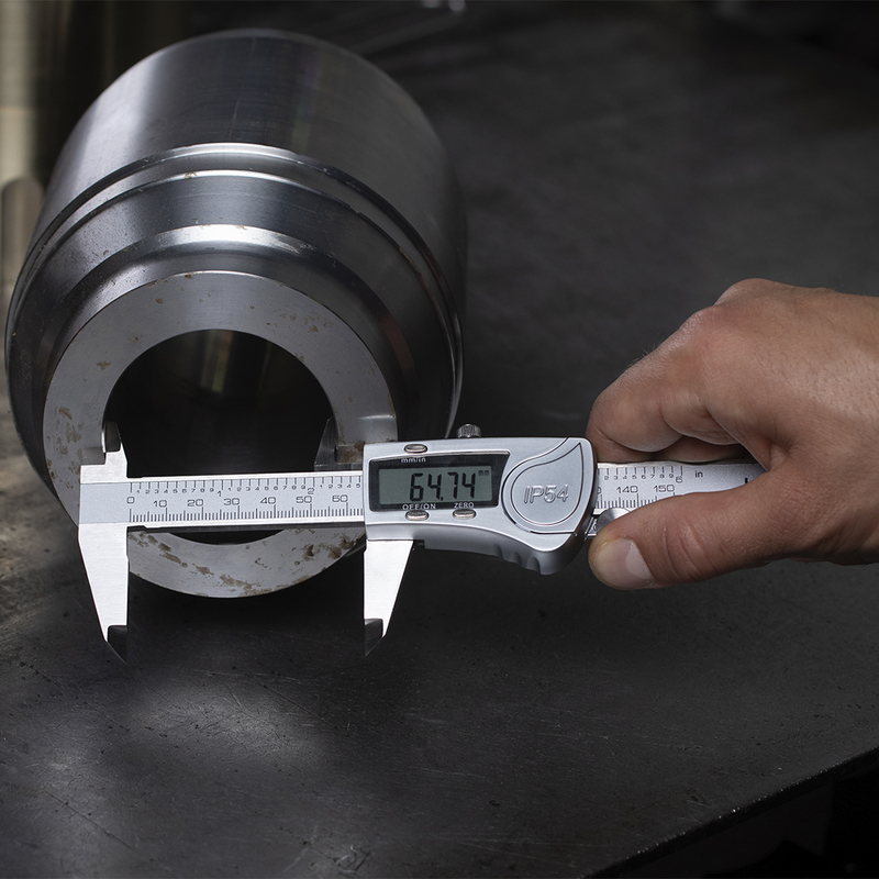 - точність вимірювання 0.02 мм, діапазон виміру 0 - 150 мм; кнопка для обнулення показань;
