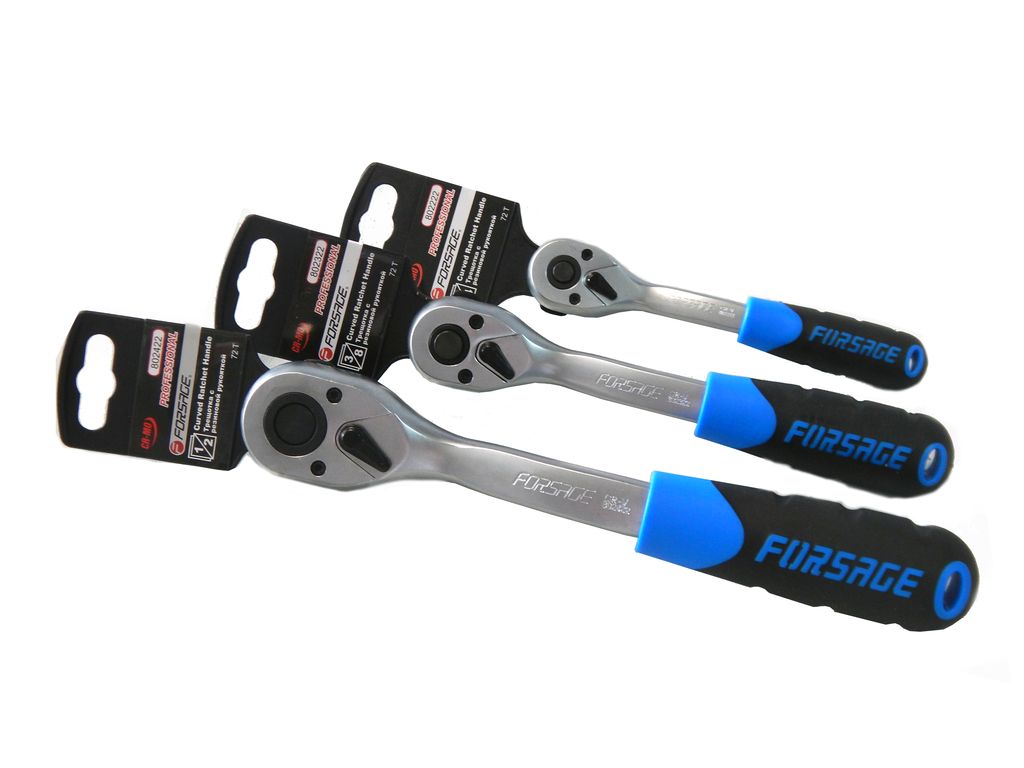 Склад: Тріскачка реверсивна з гумовою ручкою 3/8" (72зуб., L-200мм) на пластиковому тримачі Forsage F-802322