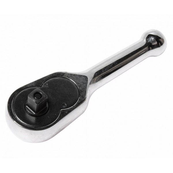 Укорочена тріскачка; зі сталевою рукояткою. Забезпечує зручну роботу в обмеженому просторі. Посадковий квадрат: 3/8; Довжина: 110 мм. Кількість зубців: 45.