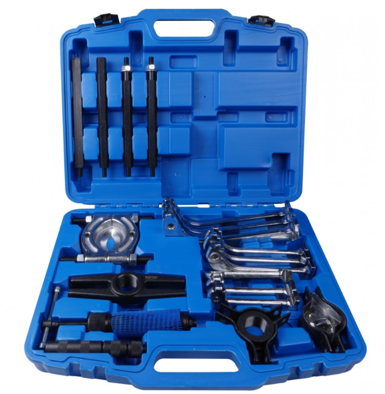 Комплектація: 10-тонний гідравлічний циліндр діаметром 37.7 мм. – 160 мм.х16Т (дюйм) – 1 шт. Комплект лап: 4; -6; -8; по 3 шт. кожних. Подвійна головка1 шт. Потрійна головка1 шт. Виштовхувач 1-11/4; 1 шт. Подовжувальна штанга 1; -2; 1 шт. Подовжувальна штанга 1; -4; 1 шт. Подовжувальна штанга 8-1.75Р2 шт. Рукоятка1 шт. Сепаратор та болт (діапазон: 75мм-105мм болт 5/8-18Т)1 шт. Гайка1 шт. Окремий знімач для підшипників1 шт.