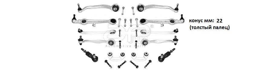 К-кт важелів підвіски перед. Audi A4 B6, B7 01- (з тонким пальцем, конус 16мм)