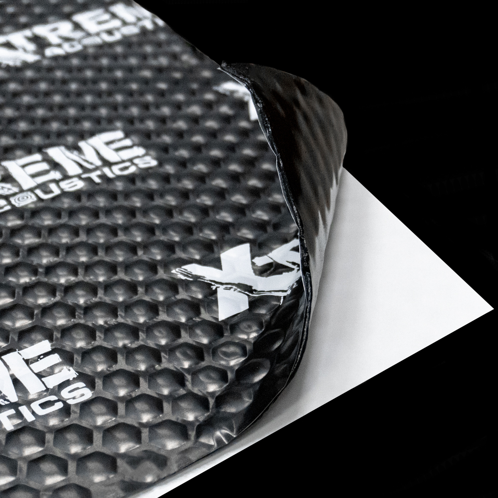 Віброізоляція ACOUSTICS XTREME 700*500*3,0. ACOUSTICS Xtreme – віброізоляційний матеріал нового покоління. Дуже ефективно поглинає вібрації. Представляє собою високов'язку каучукову композицію, армовану алюмінієвою фольгою з одного боку і захищену антиадгезіонним папером з іншого. Фольга з нанесеним логотипом виділяє матеріал серед інших. ACOUSTICS Xtreme має ряд унікальних властивостей: – надзвичайно високу липкість, яка дозволяє полегшити монтаж віброізоляції для авто та мати впевненість у її надійному приклеюванні; – легкість, завдяки зниженню ваги матеріалу на 30%, дозволяє зробити віброізоляцію авто без істотного збільшення його ваги; – ефективність, яку забезпечує високий коефіцієнт механічних втрат КМВ; – поглинання вібрацій в такому температурному діапазоні, де більшість інших матеріалів втрачають свою ефективність, завдяки спеціально розробленому складу каучукової композиції. Застосування: дах, двері, капот, кришка багажника.