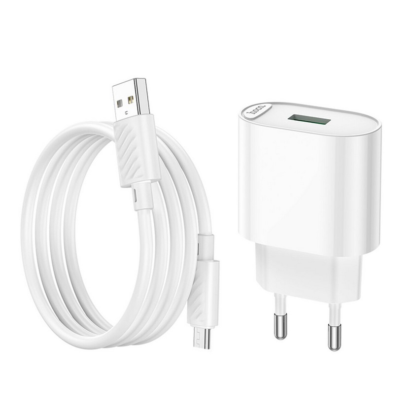 HOCO C109A Fighter single port QC3.0 charger set(Micro) White — це практичний, компактний аксесуар, який відрізняється підтримкою швидкої зарядки та винятковою надійністю, а також йде в комплекті з кабелем Micro-USB довжиною 1 м.